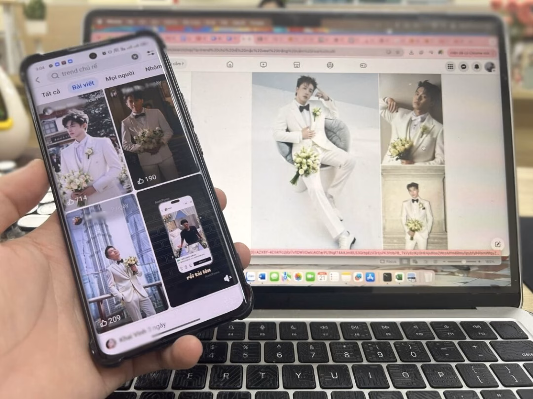 Trào lưu ghép ảnh chú rể mặc vest trắng cầm hoa cưới đang lan tỏa nhanh chóng trên các nền tảng mạng xã hội tại Việt Nam. Với sự hỗ trợ của các ứng dụng chỉnh sửa ảnh thông minh, người dùng có thể dễ dàng tạo ra những bức ảnh cưới ‘ảo mà như thật’, mang tính giải trí cao và thu hút nhiều sự quan tâm.
