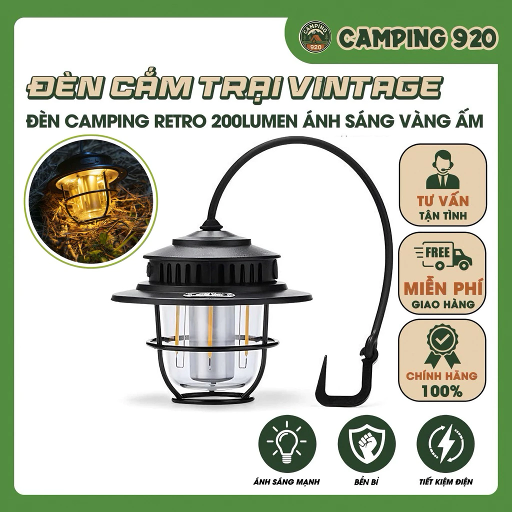 - Bền bỉ: Với thiết kế chắc chắn và vật liệu chất lượng, đèn cắm trại vintage có thể chịu được các điều kiện thời tiết khắc nghiệt và sử dụng lâu dài.