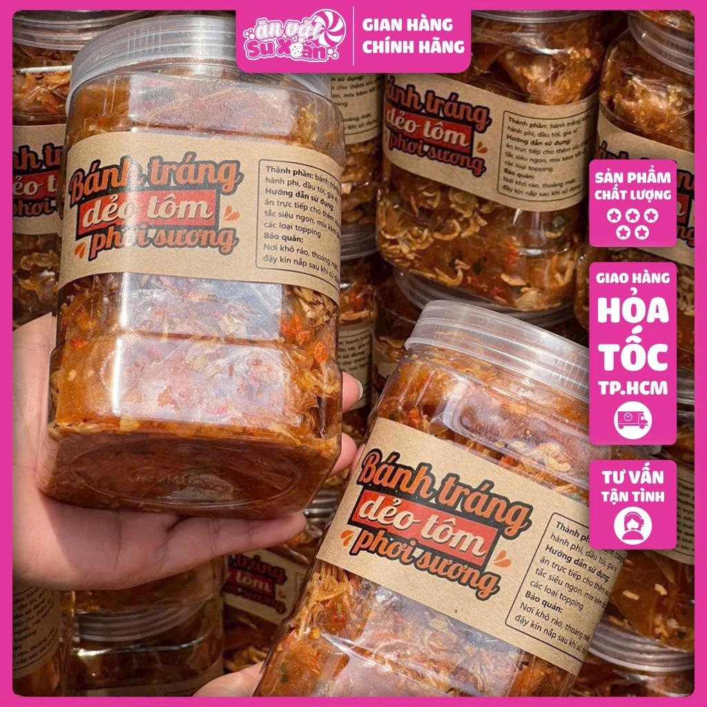 Nếu bạn đang tìm kiếm một sản phẩm bánh tráng dẻo tôm phơi sương chất lượng và có thể bảo quản dễ dàng, hãy tham khảo sản phẩm BÁNH TRÁNG DẺO TÔM PHƠI SƯƠNG Hũ 400gr Mix Gia Vị của Su Xoắn.