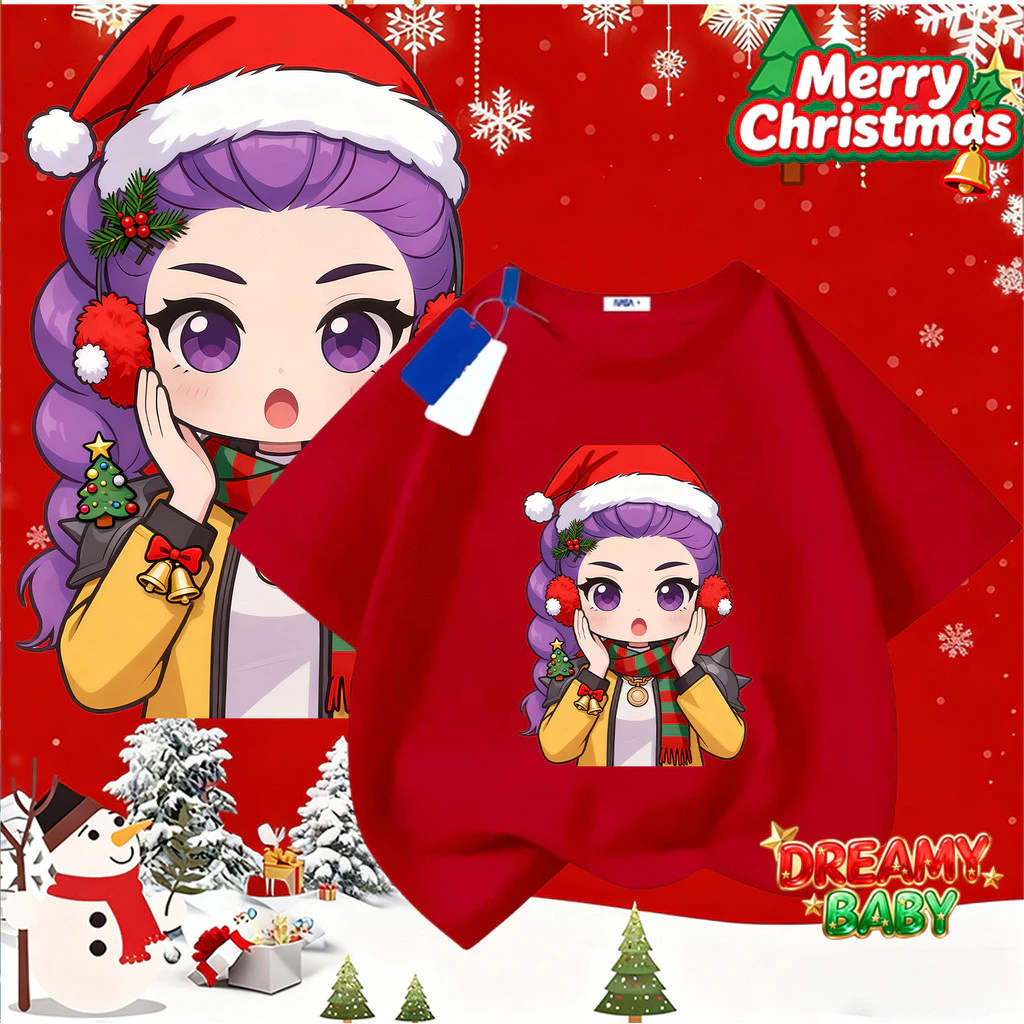 🔥 COD✅ (Hồ Chí Minh)DREAMY BABY Áo thun đỏ chủ đề cô gái dễ thương tóc tím phiên bản Q Giáng sinh,Giáng sinhT11 đang giảm giá!