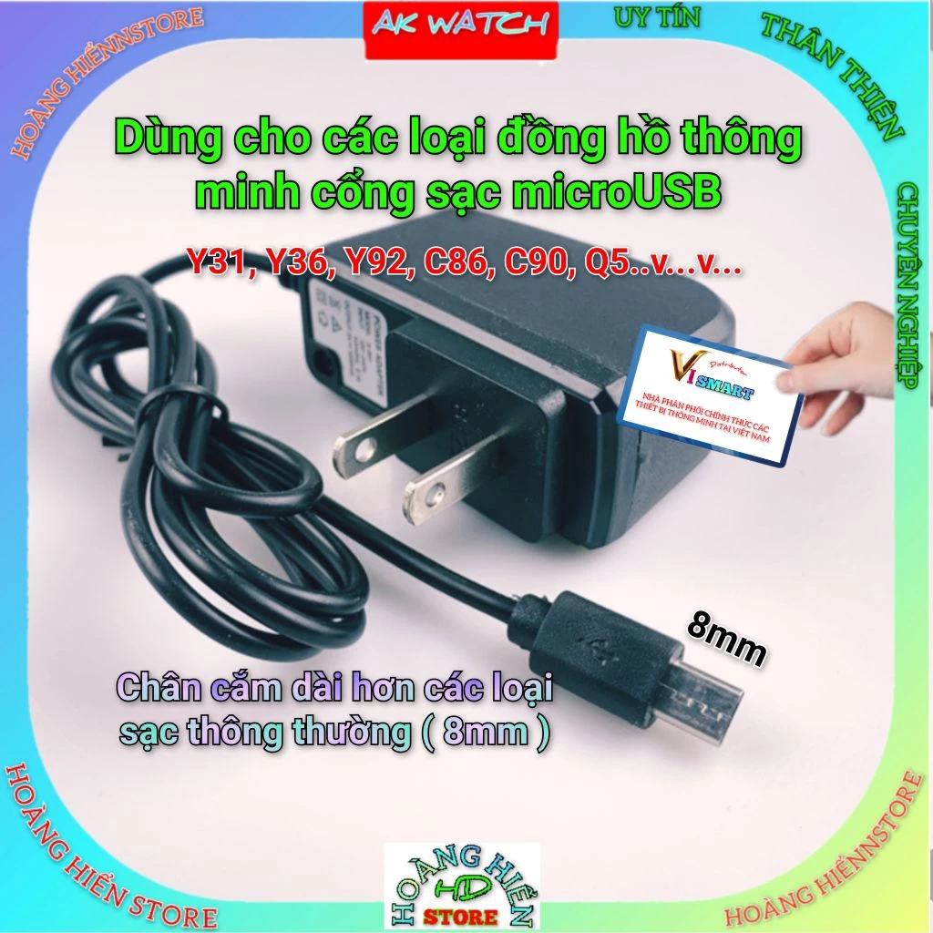 - Đồng hồ thông minh Y92, Y31, Y36, C80, C90, C95, C86: Cổng sạc microUSB 8mm.