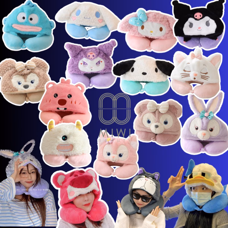 🔥 LOẠI 1 MŨ TO CHE ĐC MẮT Gối cổ du lịch chữ U kèm mũ gấu Lotso, kuromi, mèo lucifer, gấu kaki, vịt donal gối du lịch đang giảm giá!
