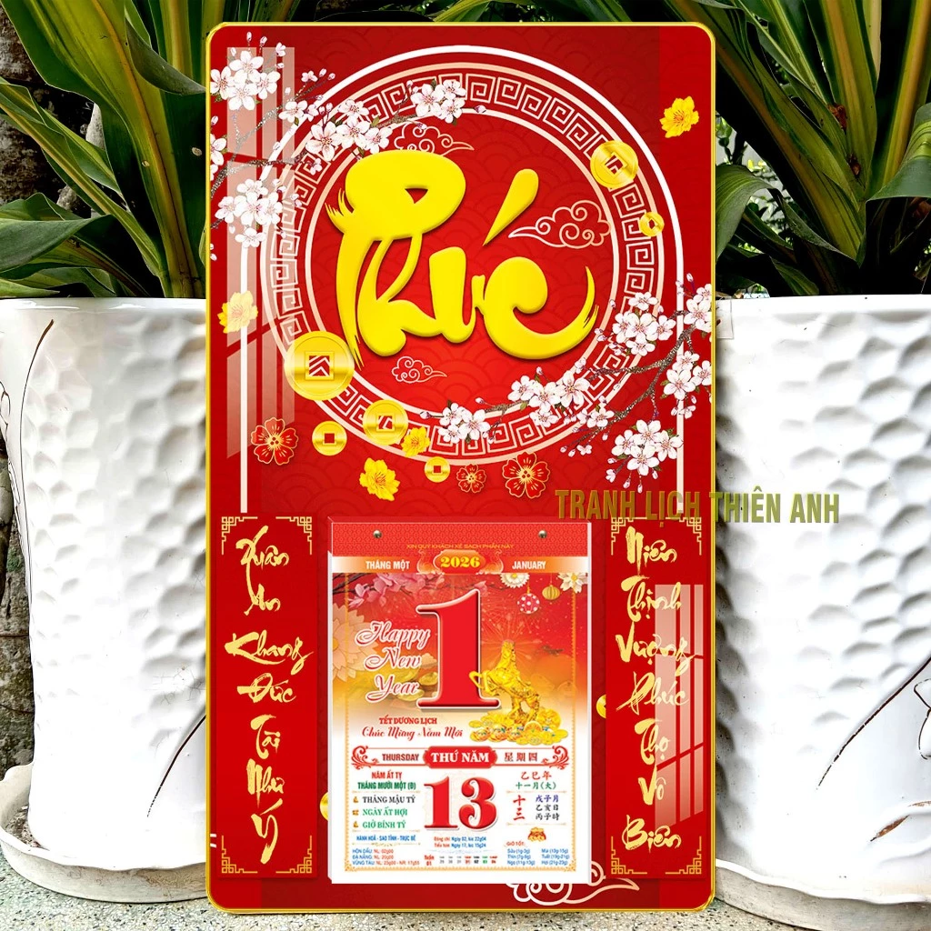 🔥 Lịch 2026 – Lịch treo tường tráng gương 34x60cm, bọc viền vàng, kèm bloc đại 14.5×20.5cm đang giảm giá!
