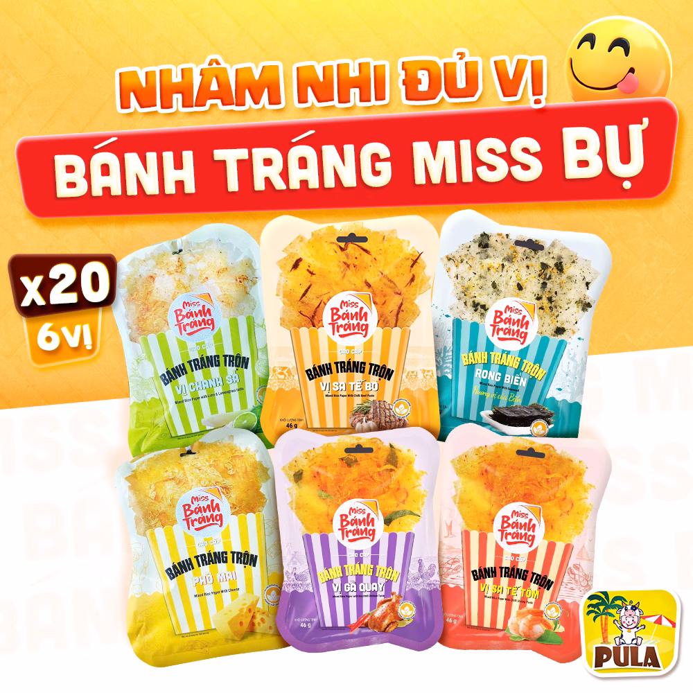 🔥 20 Bịch BỰ | Bánh Tráng Miss Bự Tiệm nhà Pula 6 Vị | Combo Bánh Tráng Trộn Gói 40-46 Gram Đủ Vị | Ngon Dễ Nghiện đang giảm giá!