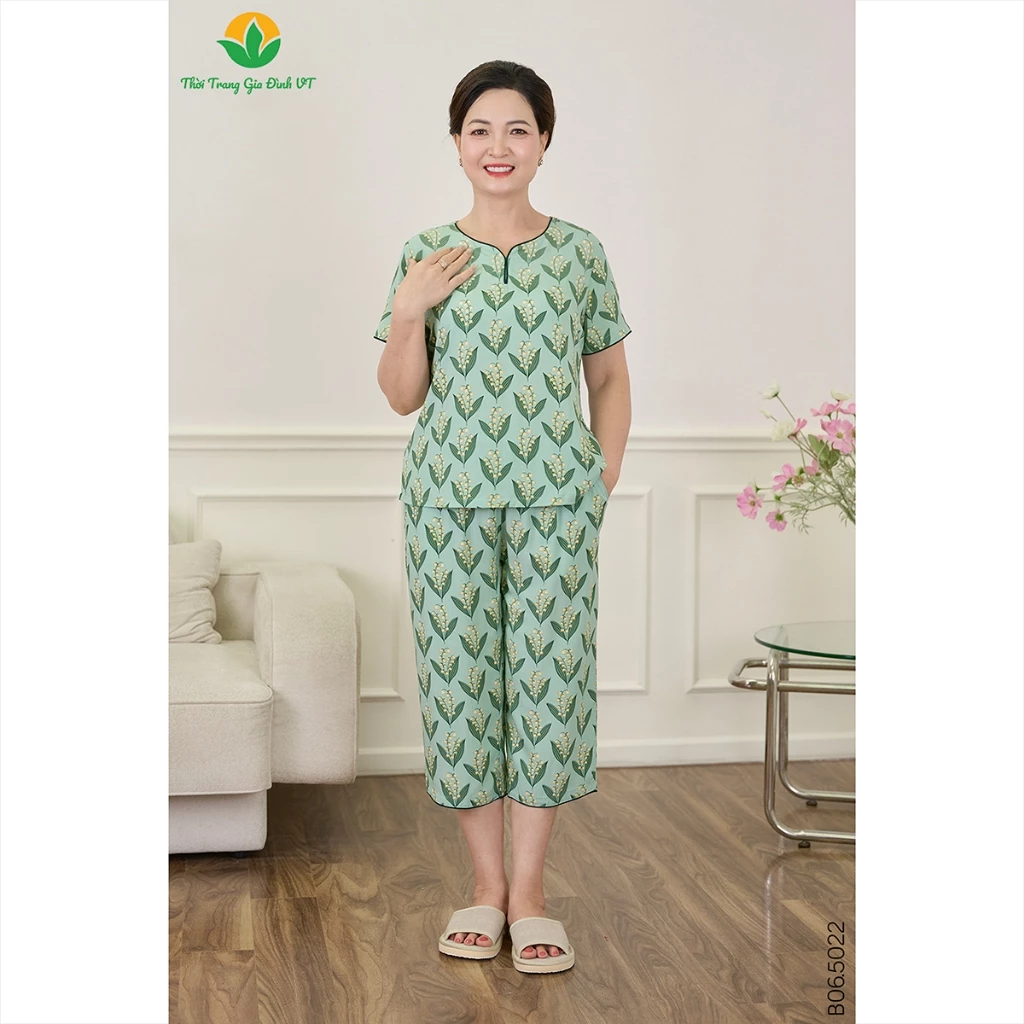 🔥 Bộ đồ lanh tole trung niên mặc nhà thời trang Việt Thắng, quần lửng, áo cộc tay họa tiết – B06.5022 đang giảm giá!