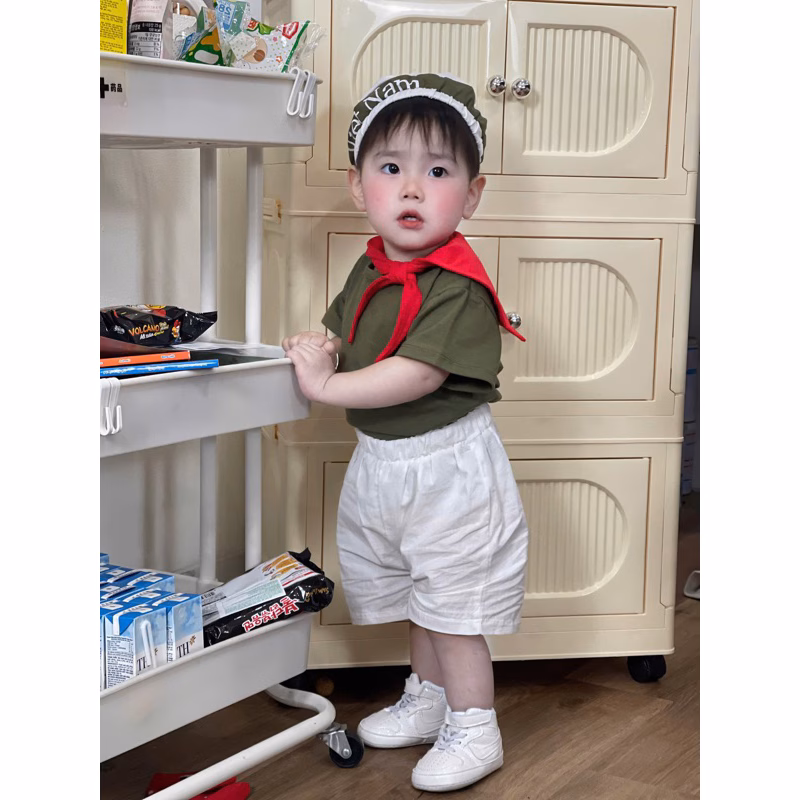 🔥 (có hoả tốc) Set bộ quân đội yêu Việt Nam 5 món kèm mũ và túi cho bé trai bé gái 5-20kg(hàng chuẩn màu như ảnh mẫu mặc) đang giảm giá!