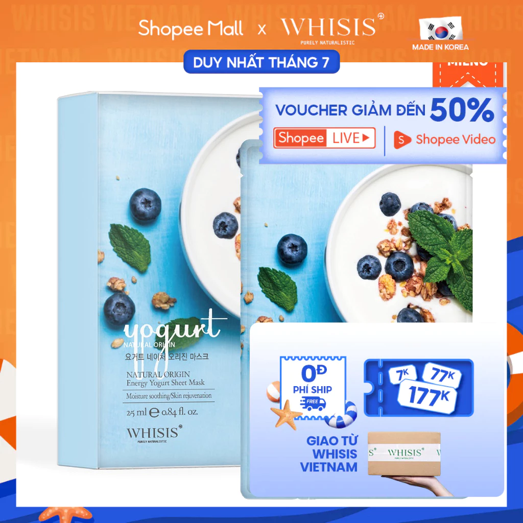 🔥 Combo 10 Mặt Nạ Sữa Chua WHISIS Nature Origin Energy Yogurt Sheet Mask Dưỡng Sáng Da 25ml/miếng đang giảm giá!