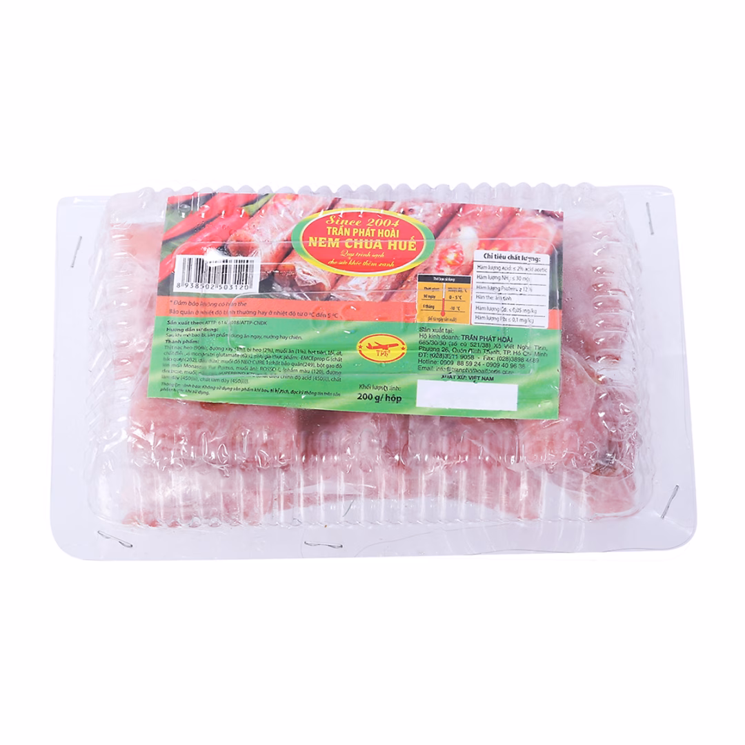 Hiện nay, trên thị trường có nhiều sản phẩm nem chua Huế được sản xuất và phân phối. Một trong những lựa chọn đáng tin cậy là Nem thịt Huế (Nem Chua) Nhật Nam – 200gr. Sản phẩm này được làm từ thịt lợn tươi, lên men tự nhiên và không chứa các chất bảo quản nhân tạo.