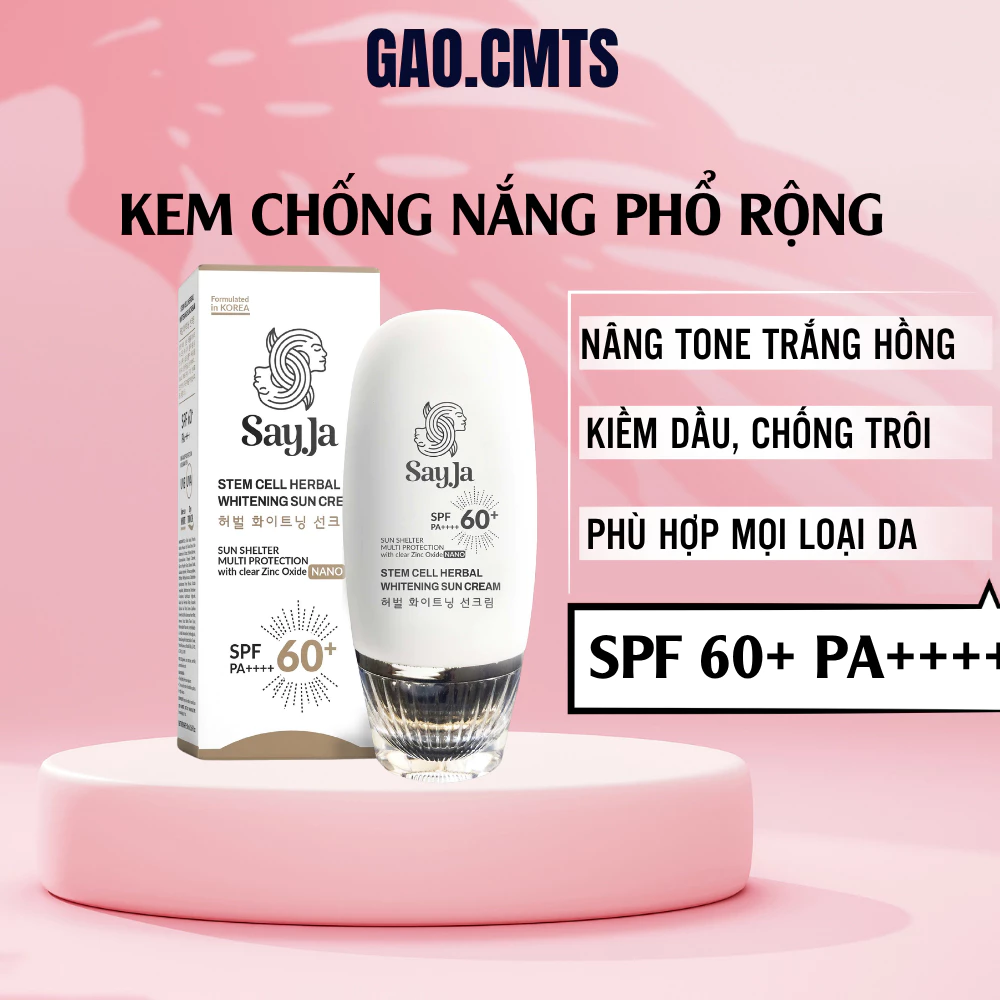 🔥 Kem chống nắng phổ rộng Sayja nâng tone, dưỡng trắng da chống tia UVA UVB, SPF60+ PA++++ dung tích 50ml đang giảm giá!